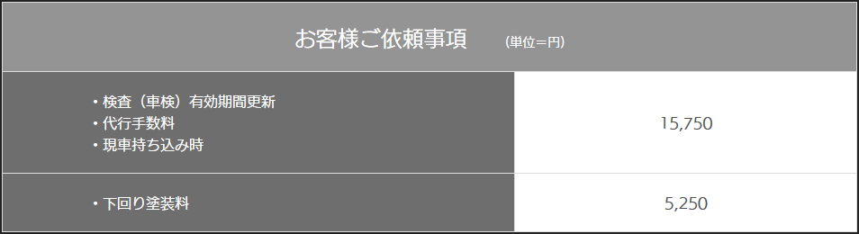 エンジン・下回り洗浄料金 | 5,250 | 5,250 | 5,250 | 5,250 |